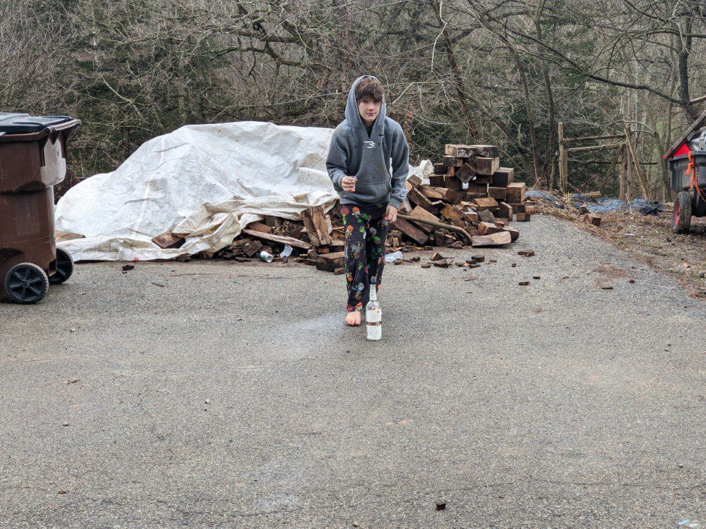 Take 2 was to put baking soda into a bourbon bottle and dropping vinegar on top of it and then installing a cork. it was not a success.